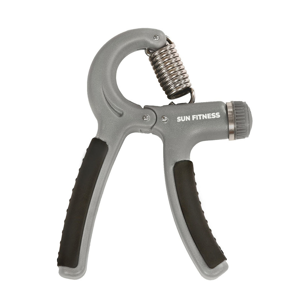 Improve grip strength with the Sun Fitness Adjustable Hand Gripper. Soft, non-slip handles keep workouts comfortable, while the tension knob lets you dial resistance from 22 to 88 lbs. Great for training, recovery, and stress relief on the go.